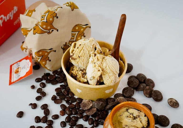 Rasapreya was born from a love of India’s timeless flavors and cherished memories. From roadside guavas sprinkled with salt to royal feasts of saffron and pistachio, every scoop is a story. We bring together age-old traditions, local ingredients, and artisanal care to craft ice-creams that taste like home with a twist of modern indulgence.